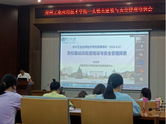 2022年6月21日,beats365唯一官方网站全体实验室工作人员在建工楼天健厅参加了由河南师范大学实验室与设备管理中心郭玉明主任的关于高校基础实验室建设与安全管理探索的培训。