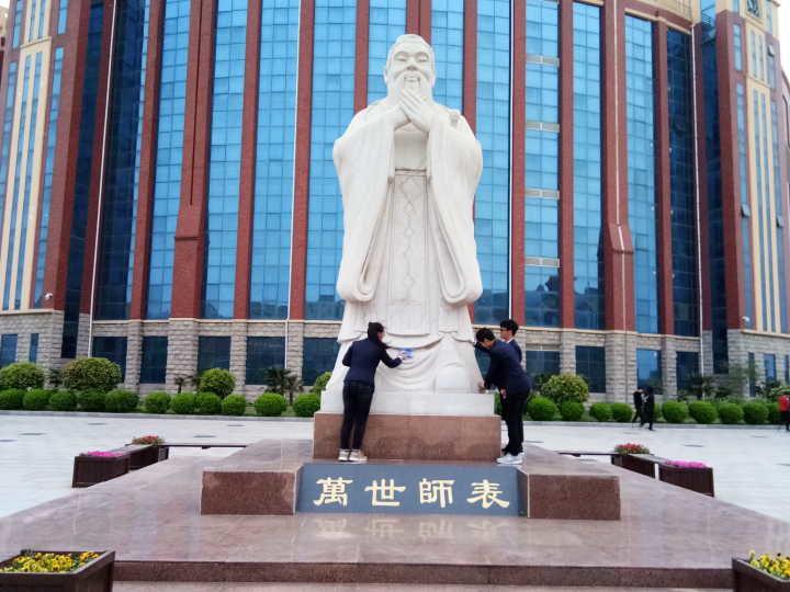 在慷慨激昂的古典音乐声中,师生集体诵读《御街行》,并向先贤孔子塑像三鞠躬,为石像拂尘,表达了对这位伟大的思想家、教育家的敬仰和尊重。“孔子是万世师表,祭拜孔子不仅让我们接受了中华传统文化的熏陶,同时也是一次学习历史、重温历史的过程。”一位员工在活动结束后激动地说道。