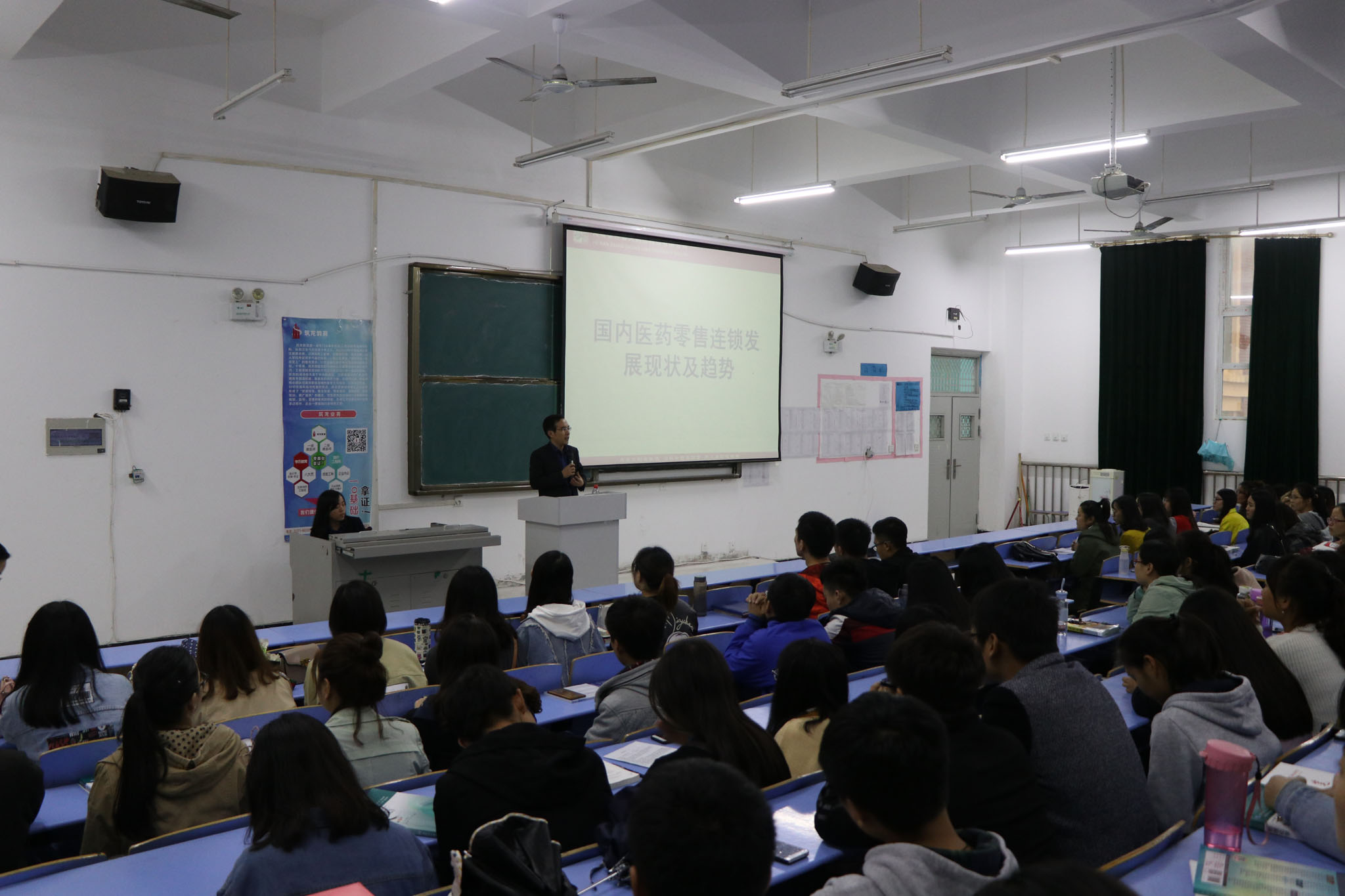 廖总从行业发展、规模及特点三个方面系统介绍了国内医药零售连锁的现状,并从大健康观念、专业化程度及智能化药房等7个方面深入分析了国内医药零售连锁的发展趋势。讲座内容专业深入,同学们都被这专业医药行业知识深深吸引,现场互动踊跃,气氛热烈,廖总就师生关心的问题一一作出解答,并希望在座的同学们珍惜大学的美好时光,利用公司一切资源努力把自己培养成适应时代需求的高级应用创新型人才。