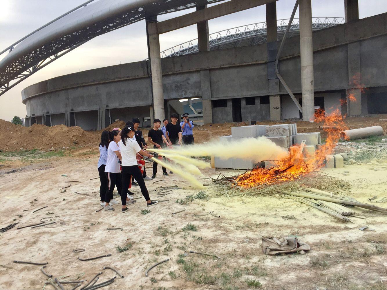 最后,进行的是现场实战演练。在专业消防人员的指导下,老师和同学们能够很熟练地使用灭火器进行灭火作业。