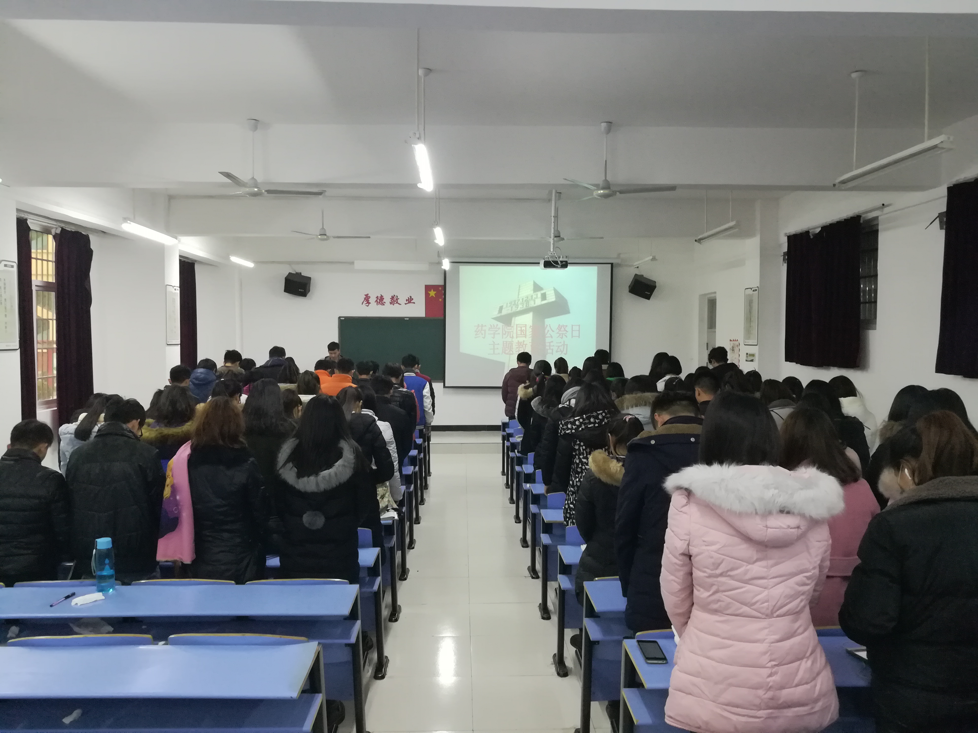 图为药公司团学干部为南京大屠杀罹难同胞默哀