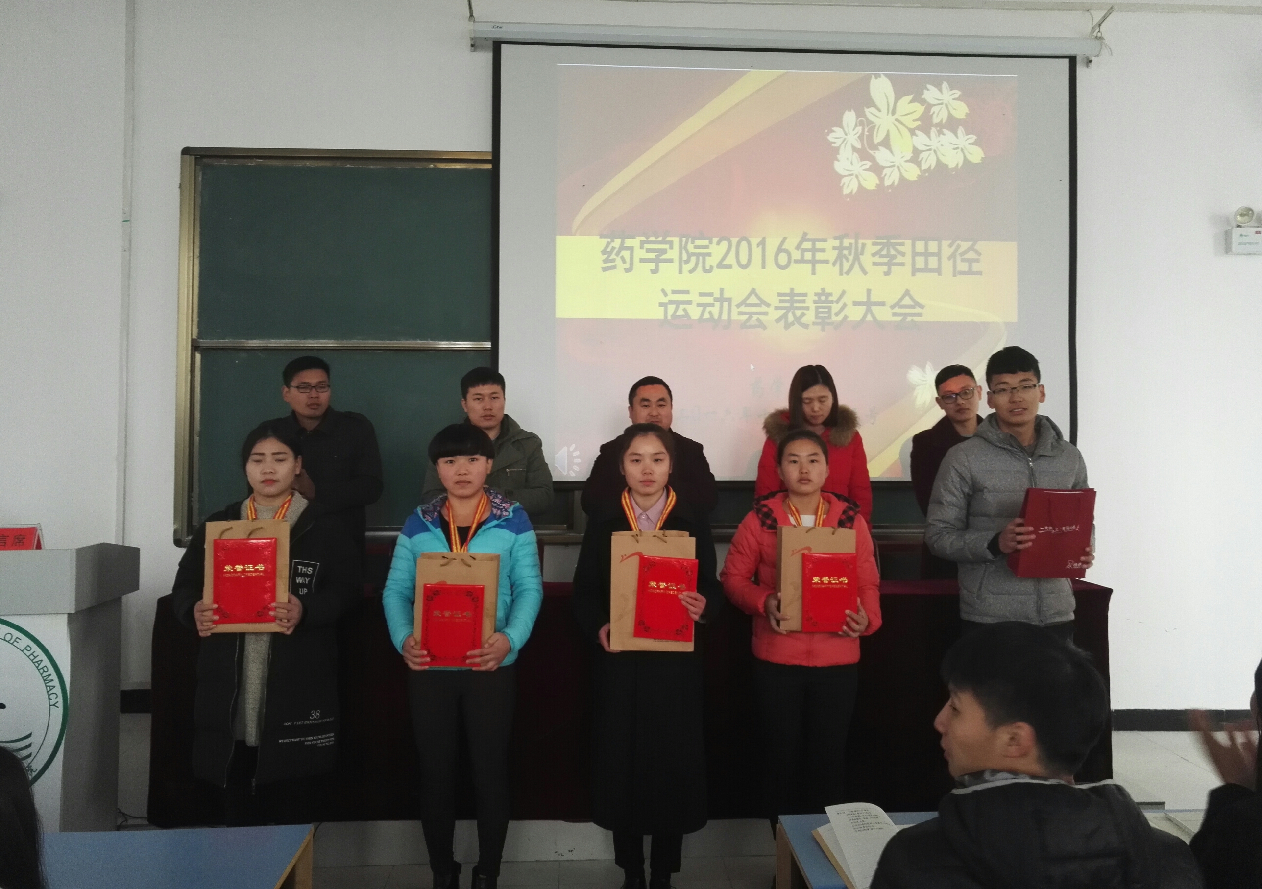 11月25日中午,药公司2016年秋季运动会表彰大会在信科二阶一教室举行,出席本次大会的有药公司党总支书记、副经理高积学、全体辅导员老师、入场式员工方队、全体运动员及志愿者300余人参加了此次表彰大会,大会由倪言言老师主持。