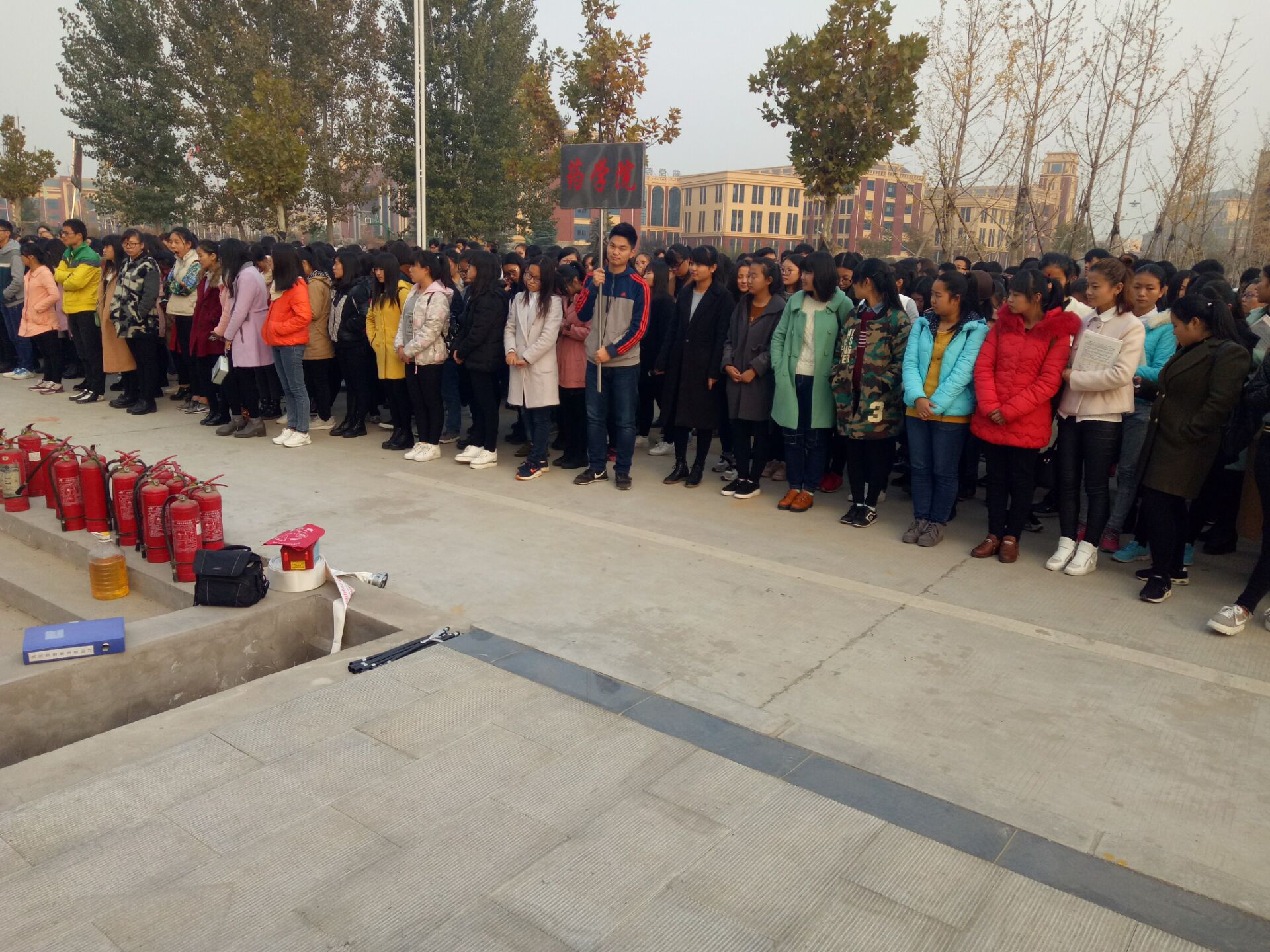 为了加强公司消防安全工作,提高师生的消防意识,有效指导广大师生在发生火灾情况下,能够正确、快速、有效使用灭火器具,进行疏散逃生和扑救初起火灾。11月15日下午4点,药公司共200多名师生代表在东校区东操场参加了消防安全教育培训和灭火演练。