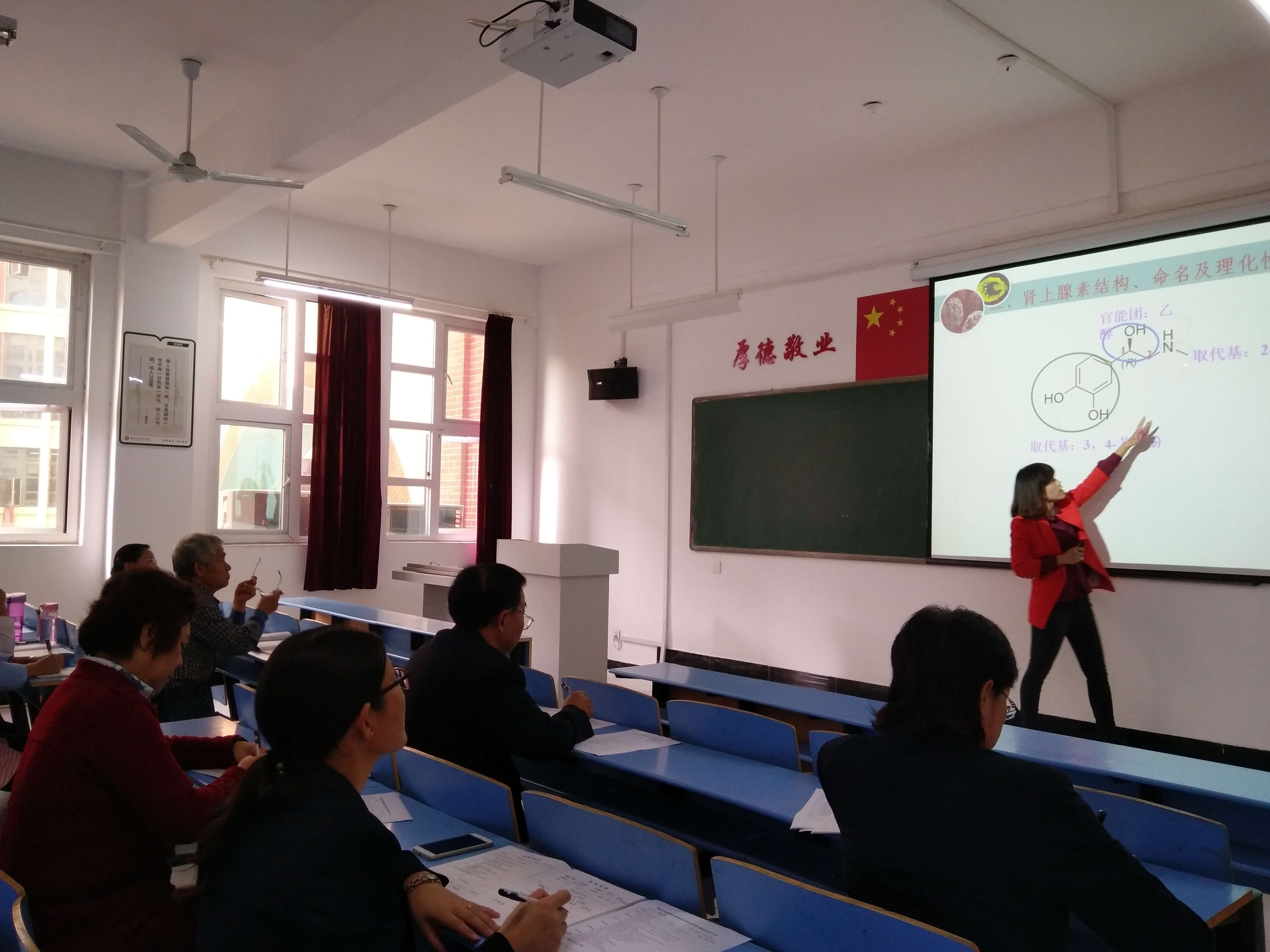 为进一步推进课堂教学改革,提高课堂教学效率,促进教师课堂教学模式和方法的转变,给广大青年教师提供展示自我和相互学习的平台,药公司于10月18日下午在XK2-210教室举行2016年青年教师优质课比赛决赛,药剂学教研室共有两名教师参加决赛。药公司经理宋丽丽出席比赛并担任评委,公司教学督导员刘欣宇主持比赛,张会丽、谢新年、冯丽珍、翟广玉、单季先等5位教师也担任本次比赛的评委。公司当天全体没有课的青年教师前来观摩和学习。