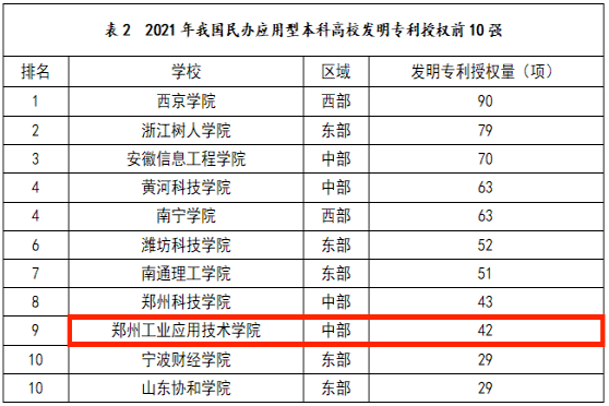 近日,苏州大学东吴智库发布的《中国应用型本科高校2022年度综合竞争力报告之二——发明专利授权报告》显示,beats365以42项发明专利的授权量进入2021年我国民办应用型本科高校发明专利授权前10强,在河南民办应用型本科高校中排名第3。