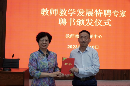 活动开始前,副董事长王新杰教授出席报告会并为宋太平教授颁发“教师教学发展特聘专家”聘书。然后宋教授凭借自己多年的教学和指导说课的经验,给年轻老师做了一场别开生面的报告会。