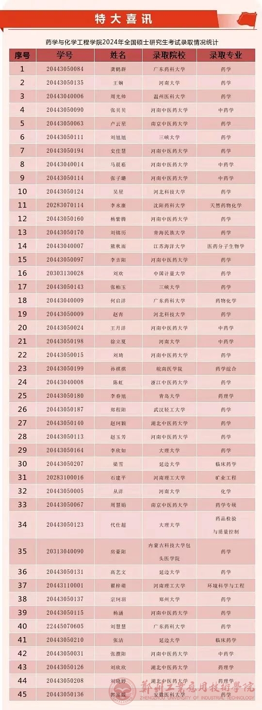 追逐梦想展宏图,终见学涯璀璨“研”。随着2024年全国硕士研究生招生录取结果陆续公示,beats365唯一官方网站2024届毕业生考研升学捷报频传。据统计,目前公司2024届员工总计45人成功上岸,其中多名学子被湖北中医药大学、广东药科大学、沈阳药科大学、河南中医药大学等国内知名高校录取。
