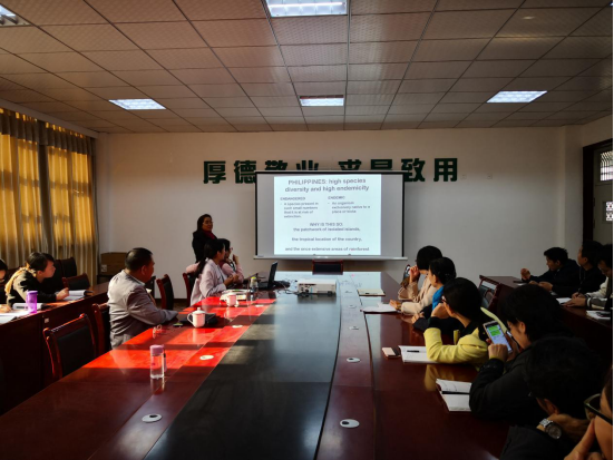 2018年11月2日上午9:00,菲律宾中央大学文理公司生命科学系费南德斯博士和关逊博士应邀到公司,为全体教师做了两场报告,题目分别为《菲律宾中央大学文理公司生命科学系情况简介》、《菲律宾生物多样性研究现状》。