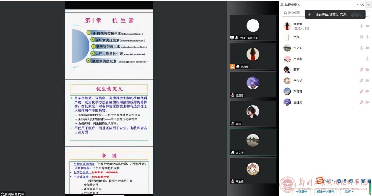 首先是药理课题组相关青年教师进行主讲,主要讲解解热镇痛抗炎药相关的内容,主讲图片如图1所示,主讲结束由个评委老师进行评价。接着是药物化学课题组相关青年教师进行主讲,主要讲抗生素相关的内容,主讲图片如图2所示,主讲结束由个评委老师进行评价。