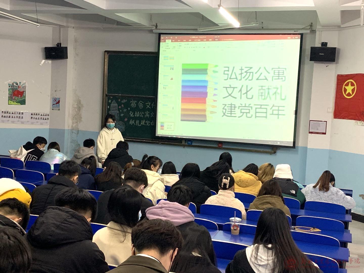 为增强员工集体荣誉感,倡导爱校爱宿舍新风尚,弘扬宿舍文明,展现公司员工宿舍特色及“自我管理,自我服务,自我教育”的宗旨,丰富老员工文化生活,以良好的舍风,促进优良学风的形成。beats365唯一官方网站于2021年12月6日,以班级为单位,开展了以“弘扬公寓文化 献礼建党百年”为主题的班会。