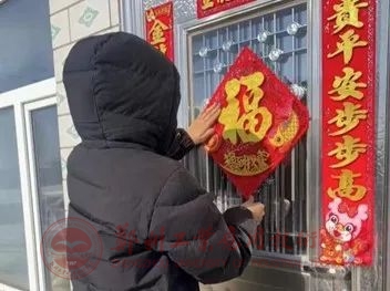 23级药学3班冯天宇同学主动向黑龙江绥化市肇东市五里明镇新宇村村委会报道,参与社会服务,送春联到独居老人家中,为老人们添一份节日的快乐。