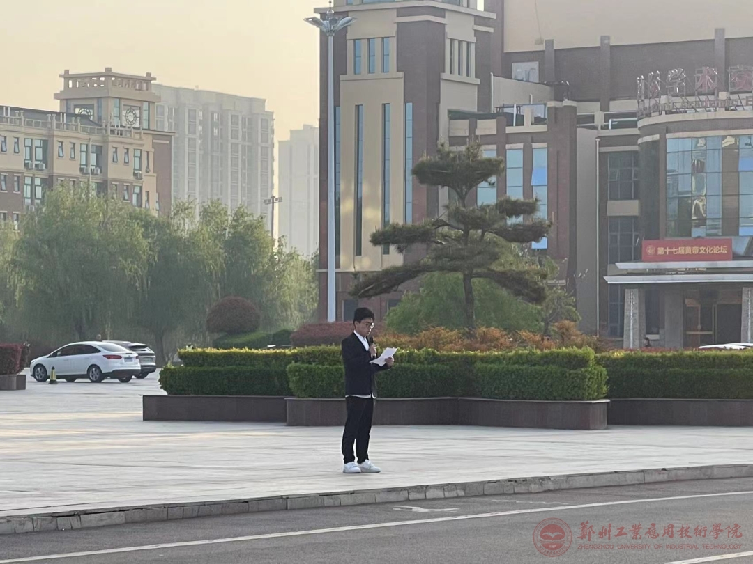 随后员工代表段文辉开展了国旗下的演讲,他表示作为新时代青年,我们应该对父母、老师、同学以及祖国心怀感恩,遵规守纪,爱护校园,奋力拼搏,永争第一,脚踏实地的完成我们的目标,仰望星空,一步一个脚印地成就更好的自己。