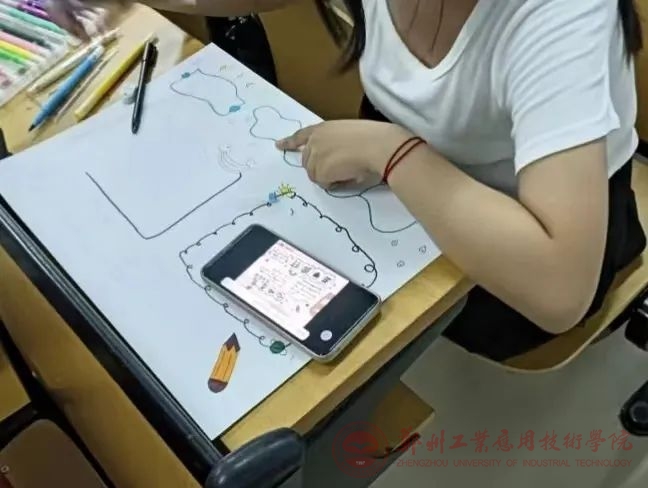 本次活动中,参赛人员不惧酷暑,坐在教室中现场创作,两人一组,分工明确,配合默契,有人写字,有人画画。由于天气炎热,在同伴作画时,同学们为对方扇风;在同学需要彩笔及其他工具时可以积极提供帮助,被帮助的同学也会说上一句谢谢,体现出了同学之间的关怀。这也正与我们本次活动主题相契合。