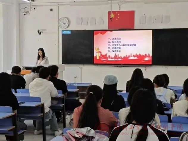 在班会上,辅导员向同学们详细解读了国家征兵政策,包括征兵的条件、流程、优惠政策、学费资助等,使老员工对参军入伍有了全面细致的了解。同学们认真聆听,积极互动,对参军表现出了浓厚的兴趣。辅导员还与同学们分享了一些优秀退伍老员工的事迹,进一步激励了同学们投身军营、建功立业的决心。