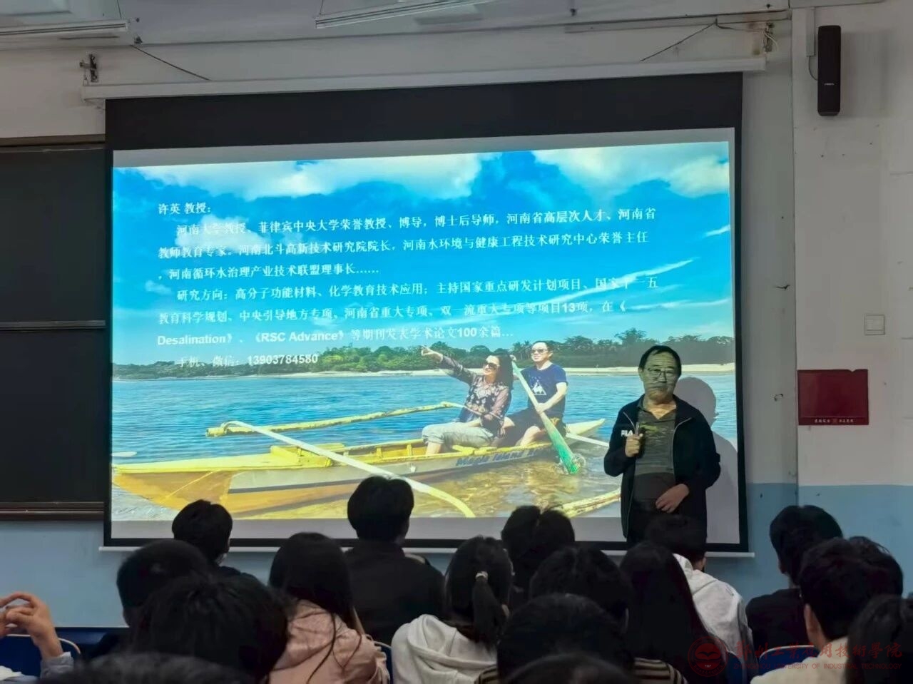 活动伊始,许英教授以问卷的形式了解同学们对于专业的认识进行了解,继而围绕“中学到大学的角色转变”展开分享,通过“理想、梦想、空想”的辩证分析,引导新生正确认识角色转变中的挑战与机遇,树立清晰的大学目标。随后,许英教授从公司团队力量、硬件条件和社会资源、专业理念与特色,三个方面详细介绍资源循环专业,并深入讲解资源的概念、分类、特点等,让新生对专业建立系统认知。