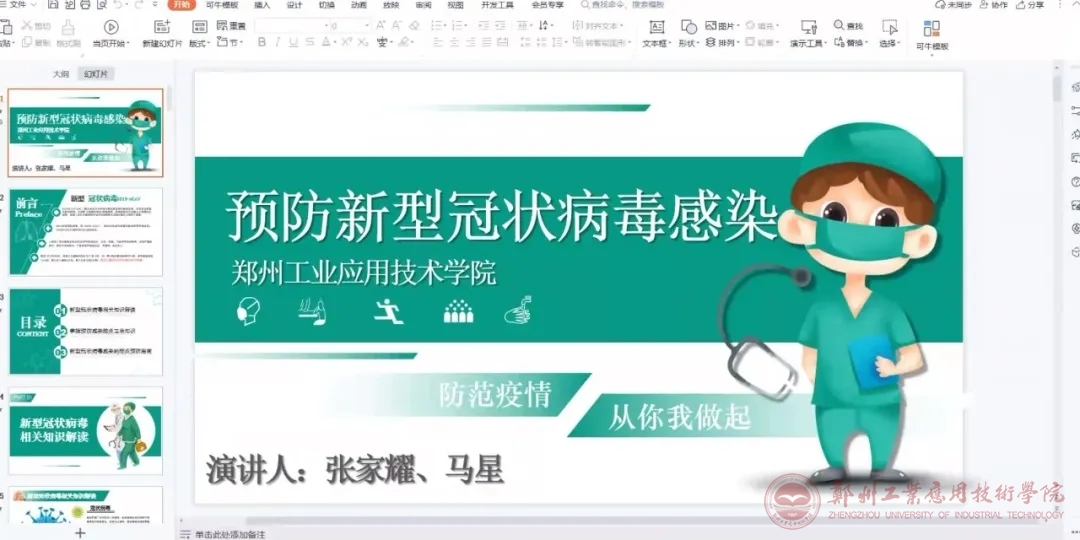 本次讲座由马星老师和张家耀老师一起为同学们讲解新型冠状病毒相关知识、如何掌握预防感染肺炎卫生知识和新型冠状病毒感染的肺炎预防指南。这次疫情防控教育宣讲内容全面,图文并茂,不仅让员工更易于接受新的知识做好自身防护,还可以更好的推进公司防疫方面的要求。