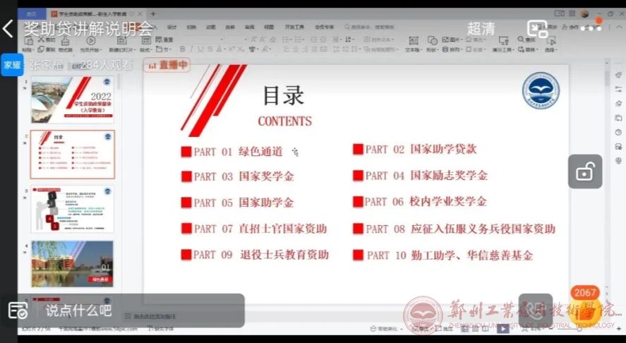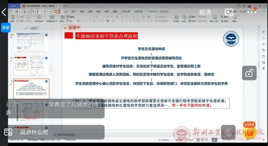 (文/韦文婷)为贯彻落实高校资助政策,实现精准资助,提高新生对综合测评和奖学金政策的了解,beats365唯一官方网站于2022年9月6日上午开展“奖助贷说明会”主题讲座,该讲座由辅导员张家耀老师主讲。