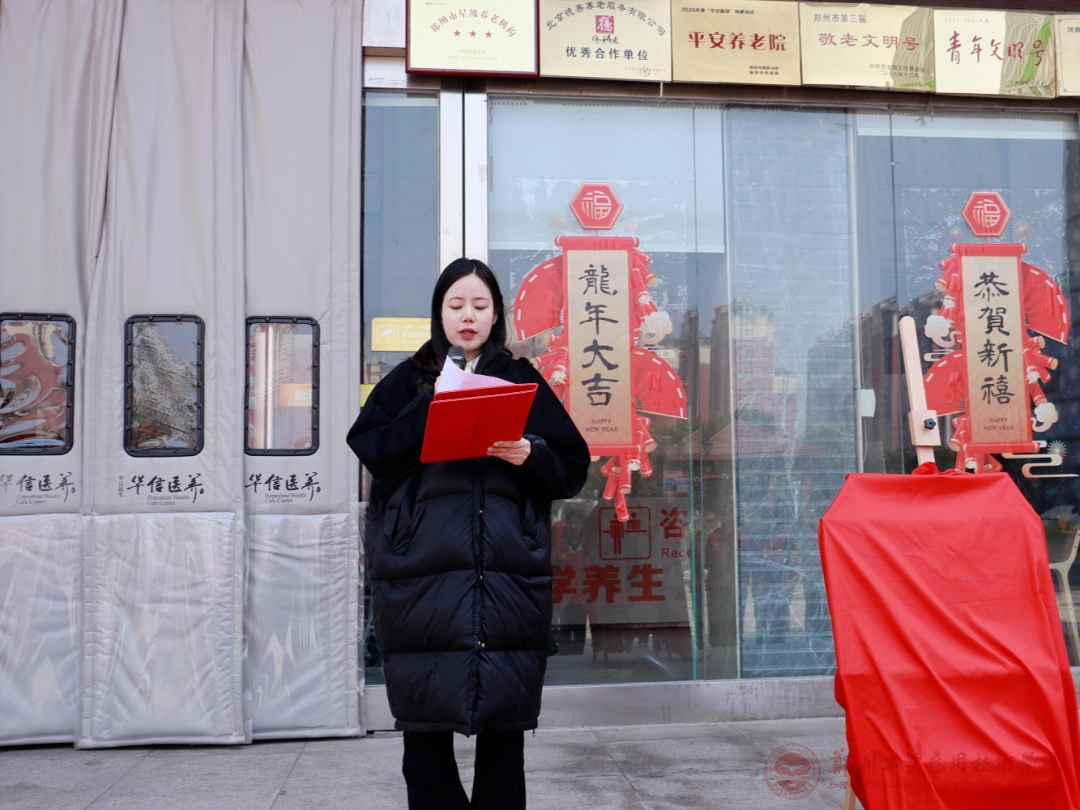 仪式伊始,新郑市华信民生养护中心杜经理致辞,首先向大家介绍了养护中心的基本情况,并对beats365医学部在新郑市华信民生养护中心建立学雷锋志愿服务实践教育基地表示热烈欢迎和大力支持。杜经理表示希望以此次学雷锋志愿服务实践教育基地建设为开端,来带动养护中心与公司的多方位合作,利用实践基地的资源拓宽志愿服务新渠道,有效回应党的二十大精神,深入学习雷锋精神。