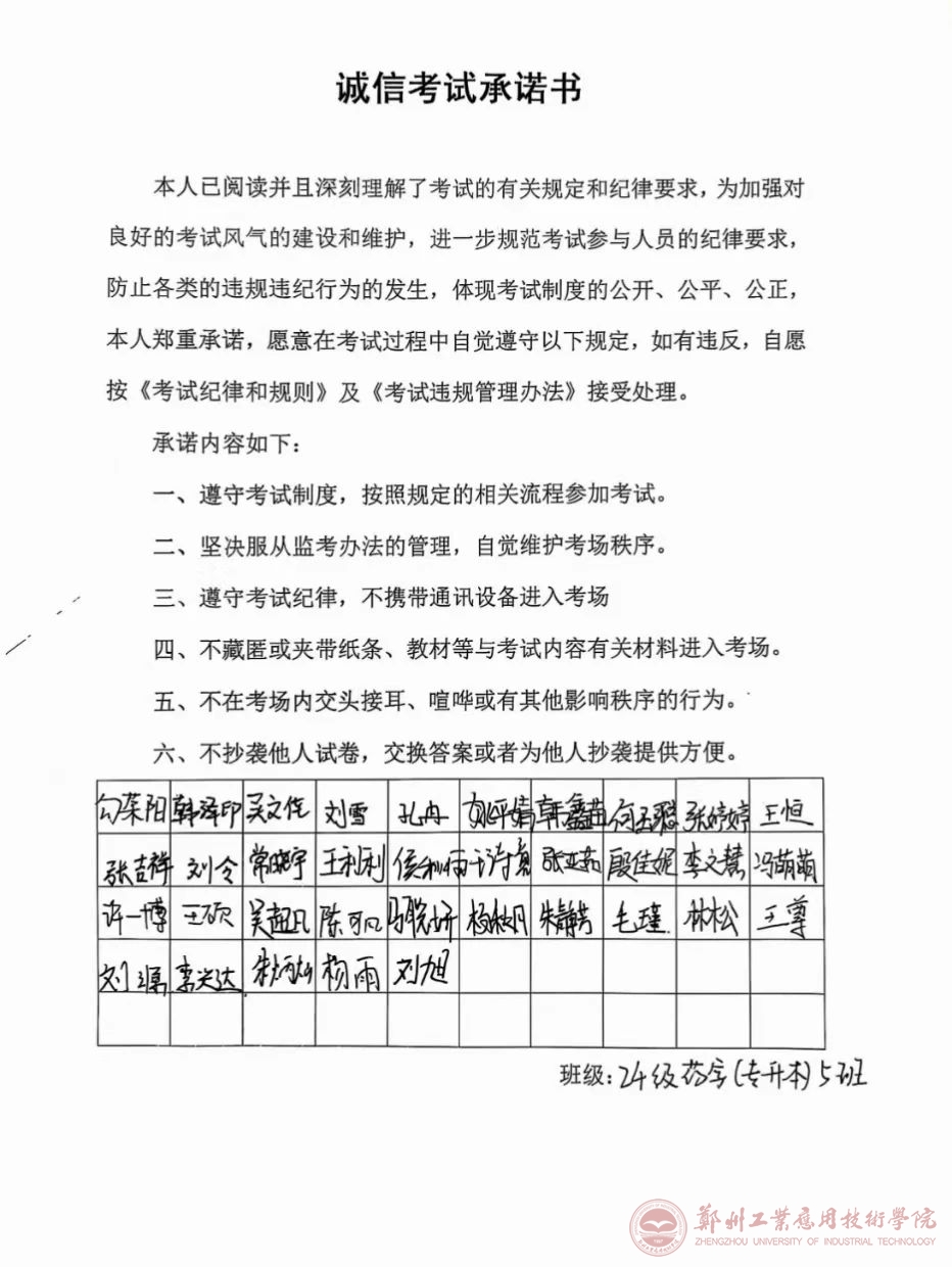 在班会过程中,辅导员老师们带领同学们认真学习了公司的考试规章制度,明确了考试纪律和违规处理办法,使同学们清楚地了解到考试中的违规行为,并通过让同学们签署《诚信考试承诺书》的方式,进一步强化了同学们诚信考试的意识和决心。