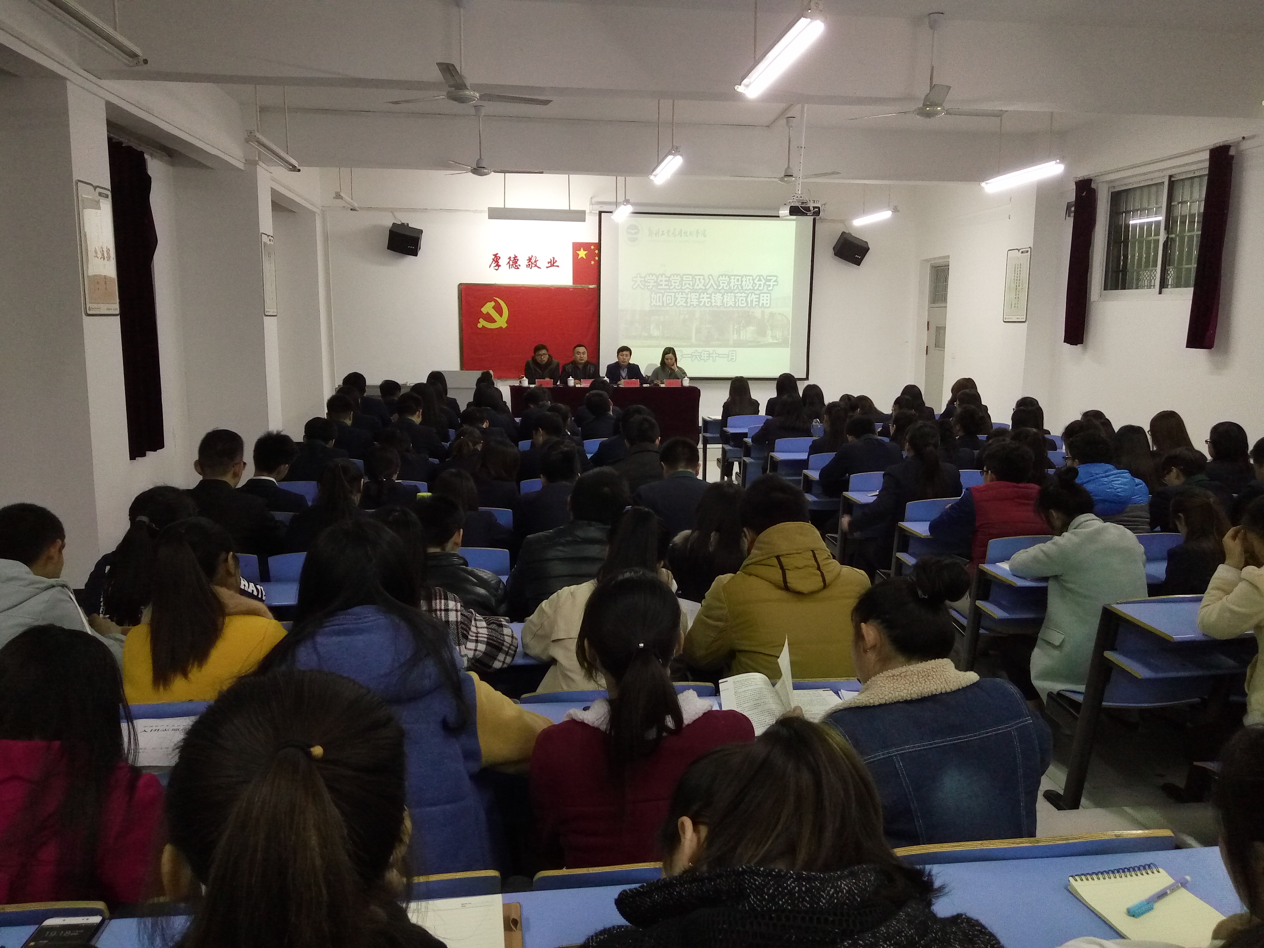 11月10日晚,随着27期党课开班典礼的圆满结束,药公司党总支高积学书记为第27期党积极分子上第一节党课。药公司27期培训班100余名学员及员工干部代表聆听了此次党课。