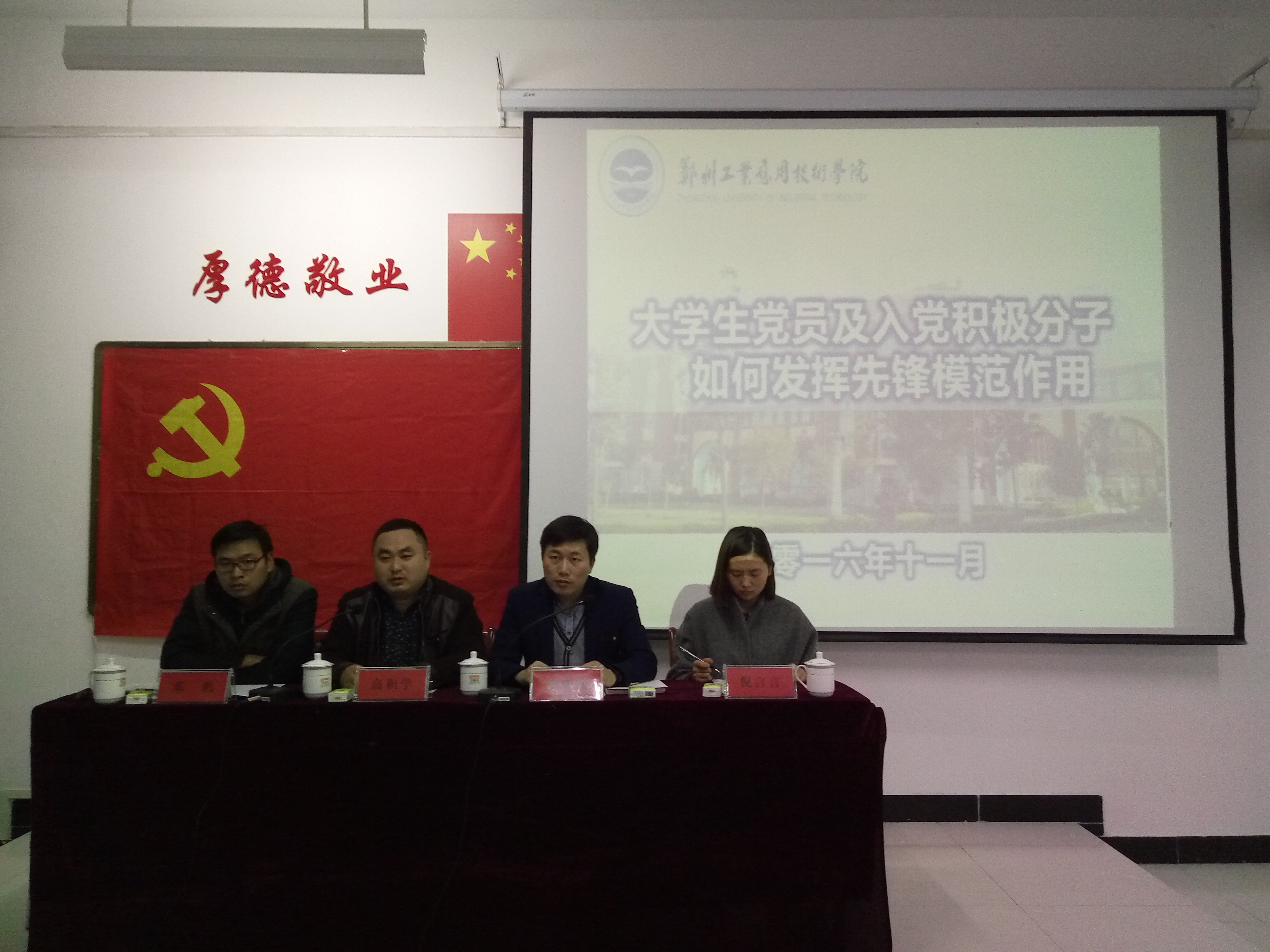 培训期间高积学书记围绕“老员工党员及入党积极分子如何发挥先锋模范作用”开始本次党课,他在培训中谈到:第一,思想上要入党,即坚定共产主义信念。老员工要加强党的理论学习,端正入党动机,坚定政治方向,不断提高自身思想政治素质,立志报效祖国。第二,争做同学中的先锋,学干中的模范。第三,争做学习文化的标兵,广大同学的勤务兵。党员的第一条义务是认真学习,作为员工,我们的首要任务也是学习。在现实生活中,我们必须意识到自己同时兼具员工和党员这双重身份,并使两种身份达到良性互动。