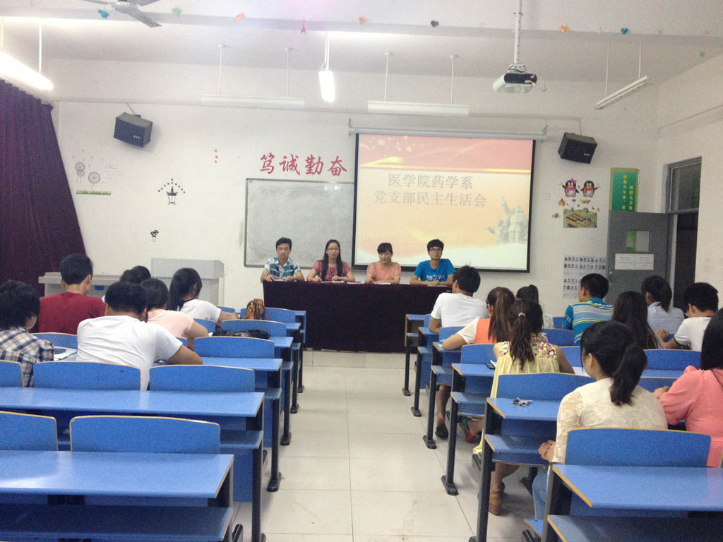 2015年5月31日晚7:30,医公司药学系组织部组织新老党员在信科楼2—203教室,全体党员参与了主题为“只有实践才能收获”的民主生活会,会议内容主要是围绕即将到来的暑假生活。会议上,党员各抒己见,畅所欲言,积极地向大家分享自己在去年暑假的精彩生活,气氛十分活跃。
