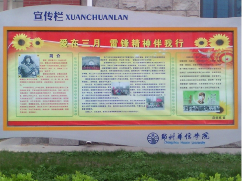 2015年3月药学系开展了以“学习雷锋”为主题的团会以及室外活动,每个班都有自己的活动方式,而且团学会也开展了活动,内容丰富,形式多样。