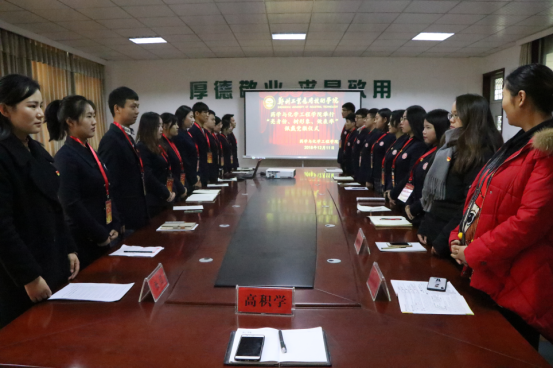 佩戴党员徽章仪式上,由张启老师宣读了《公司党总支关于开展党员“戴党员徽章、亮身份、树形象、作表率”活动的通知》。接着由高书记亲自为员工党员代表佩戴党员徽章并讲话。佩戴党员徽章不仅仅是一种责任,更是一种使命,要不断加强党员意识,始终不忘自己的党员身份,以更高的标准要求自己,在学习、生活和日常活动等各方面都要起到先锋模范作用,争做学风建设排头兵。最后,在员工第二党支部书记肖娅云老师的带领下全体员工党员在党旗下重温入党誓词。