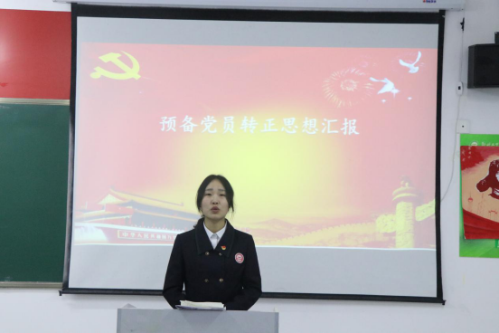 会上,转正党员代表王栋同志、新发展预备党员代表李姝凝同志分别进行了表态发言。