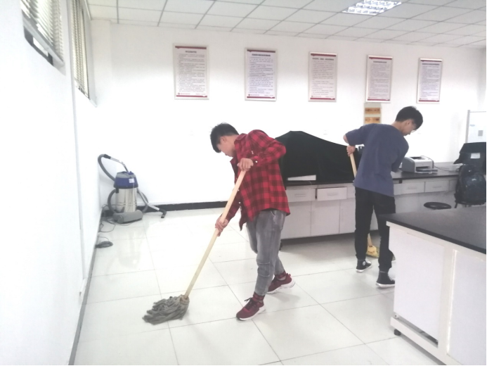 活动期间,王桁杰老师为发展对象讲解仪器的使用,进一步巩固了大家的专业知识。党员发展对象在打扫实验室的实践活动中互相配合,认真的整理仪器、擦实验台、打扫地面,最后用拖把清洁地面。