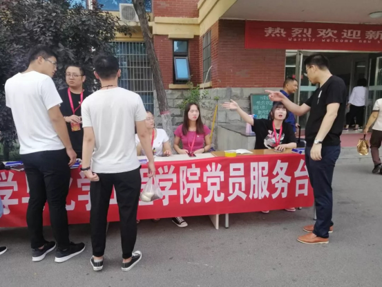 员工党员们都本着全心全意为新同学服务的宗旨,让初来乍到的新生感受到公司贴心的服务,在宿舍楼门前也设立了党员迎新服务台,全力配合公司的迎新工作,耐心为入住的每一位新生登记信息,并带领新生入住。