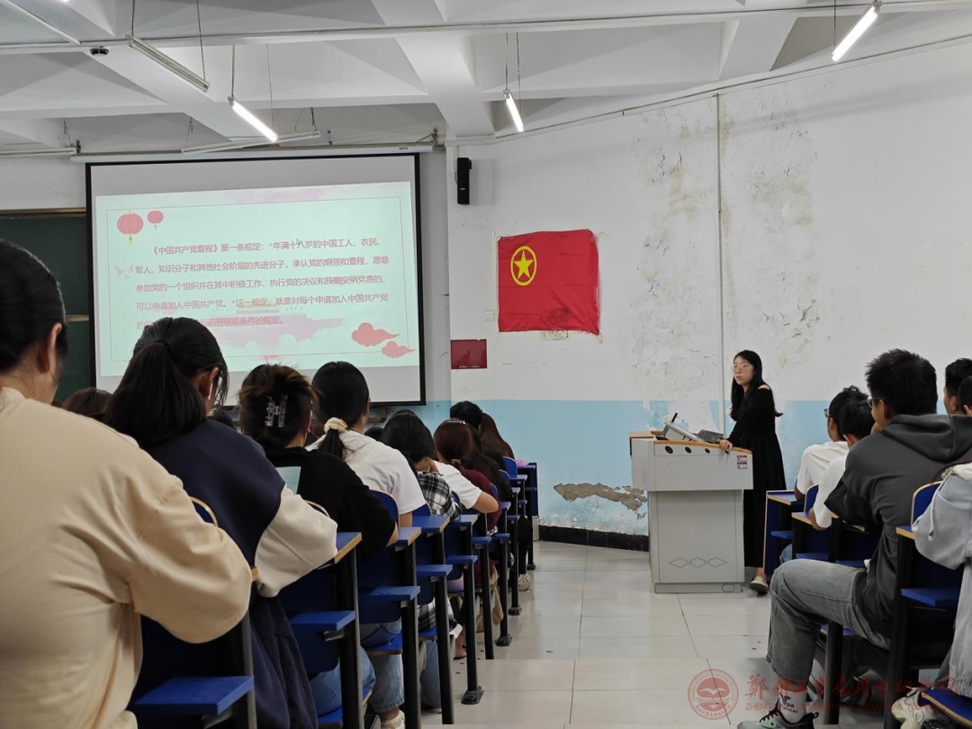 活动中,周老师先围绕“中国共产党的光辉历程与伟大成就”这一主题,带领新生们回顾了党的百年奋斗征程,深刻阐述了党的初心和使命,让同学们充分认识到党的伟大与光荣。随后,周老师详细介绍了入党的条件、程序和要求,鼓励新生们要以党员的标准严格要求自己,努力学习,积极进取,不断提高自身综合素质。