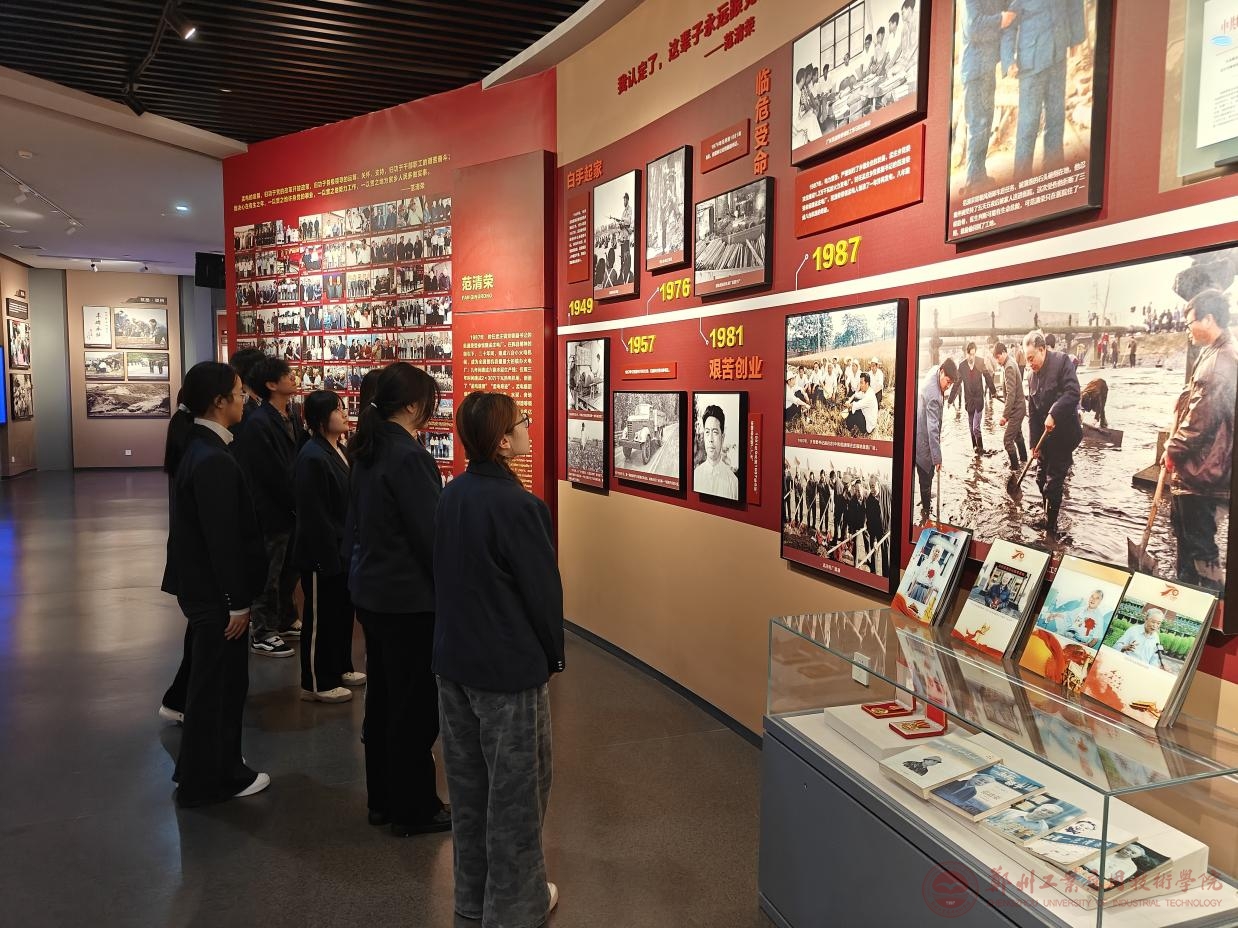 beats365唯一官方网站师生怀着崇敬之心参观“辉县人民干的好”展览馆。在讲解员的细致解说下,老照片、实物展品与场景复原交织呈现,从20世纪60年代辉县干部群众肩挑手扛修建水利工程的壮阔场景,到“宁愿苦干、不愿苦熬”的精神标语,生动再现了辉县人以“敢教日月换新天”的气概,将贫瘠山区变为宜居家园的壮举。在参观中,党员们驻足于“引黄入卫”工程模型前,听讲解员讲述当年干部与群众同吃同住同劳动的故事,深切体会到“人民群众是历史创造者”的深刻内涵。