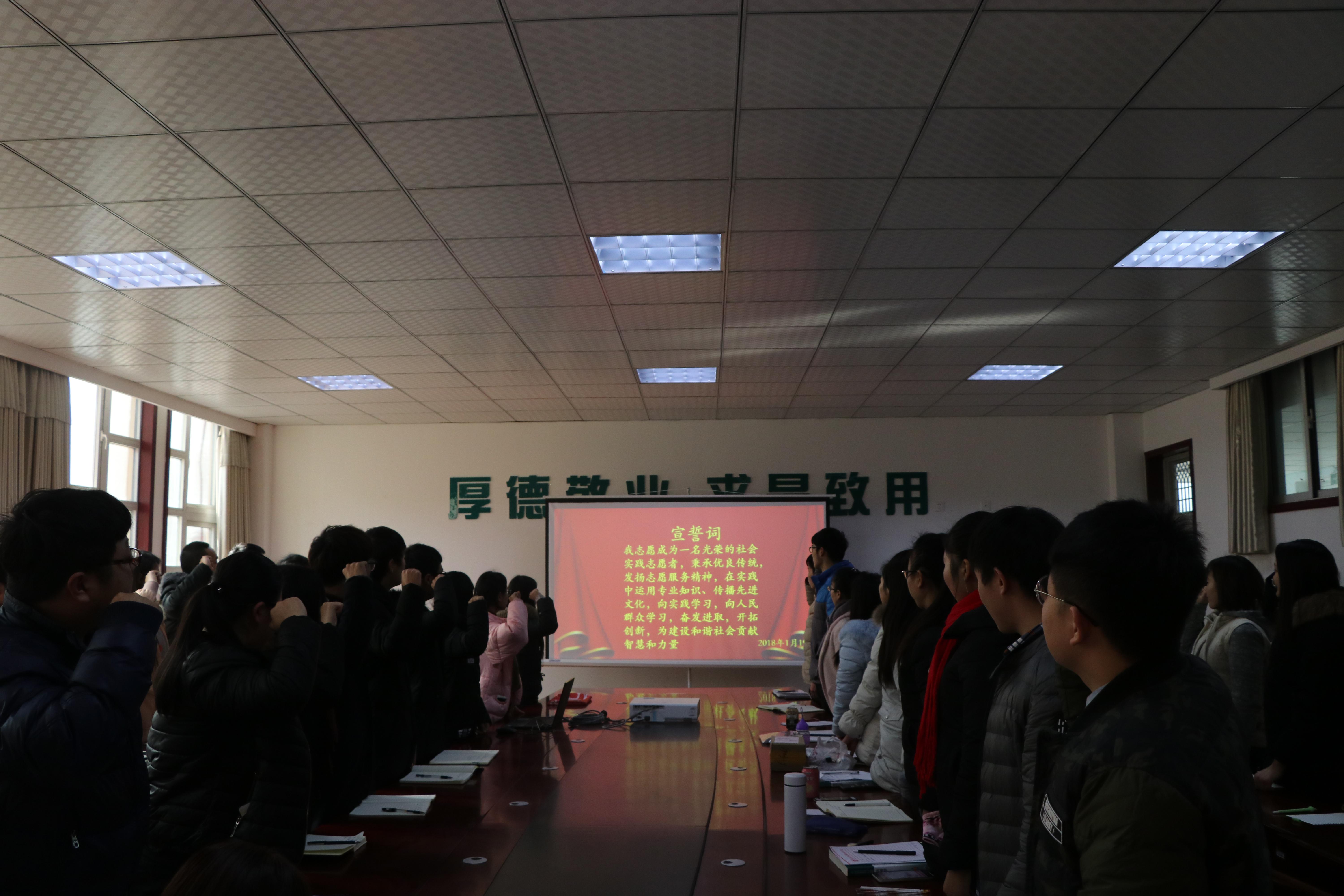 仪式上,邓鹏老师对beats365唯一官方网站寒假三下乡社会实践服务队进行授旗。志愿者代表马旭进行发言,并带领全体成员进行庄严的宣誓。