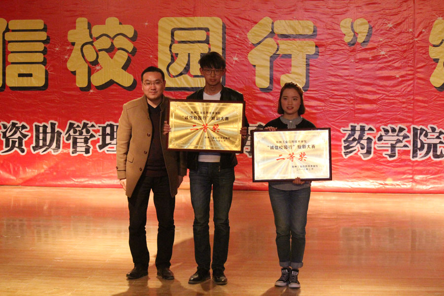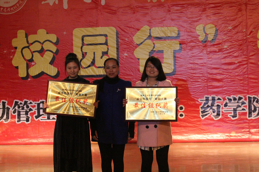 为进一步营造诚实守信的校园环境,深入践行社会主义核心价值观,由校员工资助管理中心主办,药公司承办的“诚信校园行”短剧大赛决赛于2016年3月24日19点在公司东校区艺术演播厅成功举办。员工处处长兼员工资助管理中心主任吴杰霞、就业创业指导中心主任程传喜、校团委书记赵飞、药公司经理宋丽丽教授、药公司副经理谢新年教授以及各公司党总支书记、分团委书记和各院系师生代表500余人观看了比赛。