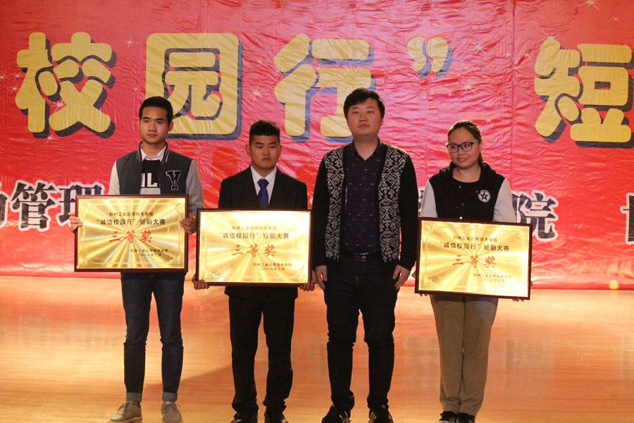 随后,思想政治教学部主任赵建华教授为本次大赛做了精彩点评,参赛作品紧扣主题,寓意深刻,发人深省。药公司带来的《诚在路上,信在你我》,感情真挚,真切感人;管理公司的《地铁站一幕》,采用了哑剧的形式,在无声中演绎了诚信的含义,让人印象深刻;建筑工程公司带来的《让感恩发声》,根据建筑工程公司陈琳同学的真实故事改编,人物贴近生活,剧情主题突出,完美诠释了诚信与感恩的意义;艺术公司的短剧《青春会所》,通过剖析人在利益面前是否讲诚信的挣扎犹豫,让同学们明白了诚信的重要意义;医公司的穿越剧《诚信人生》,融入了穿越元素,新颖有趣;管理公司选送的《变形记》,以一个员工的任性叛逆演绎了感恩的意义;商公司带来的《旅途》,人物表情夸张生动,在幽默诙谐的表演中诠释了诚信的含义;机电工程公司的短剧《诚信家园》和信息工程公司的短剧《贷款风波》都通过对真穷和装穷员工的细致刻画,批判靠装穷来博取资助的同学,宣扬了诚信精神。
