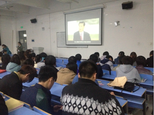 看视频过程中,大家都比较认真去看,去了解国家政治以及国情,大家看电影的热情比较高涨。