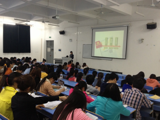 2013年4月16日晚,医公司药学系组织部组织12级青年团员在信科楼阶一举办以“学习十八大,感悟十八大”为主题的团会活动。