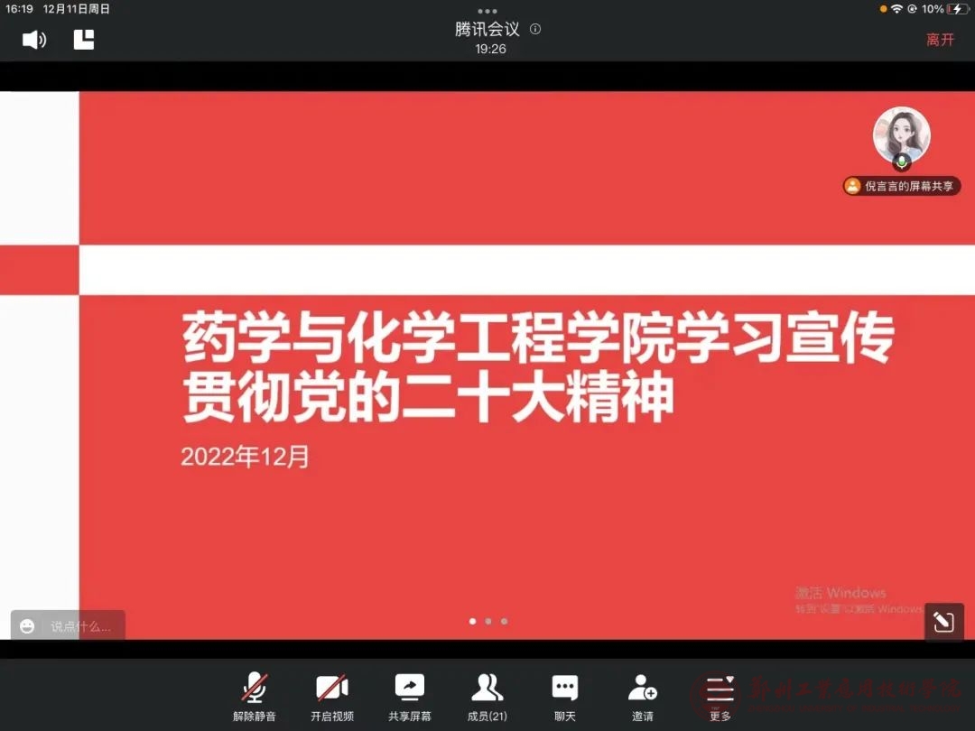 (文/黄潇琴)为深入学习贯彻党的二十大精神,全面贯彻习近平新时代中国特色社会主义思想,不断深化共青团改革和建设,不断增强引领力、组织力、服务力,切实履行党的忠实助手和可靠后备军职责,充分发挥青年运动先锋队作用,更好地把青年团结起来、组织起来、动员起来,2022年12月11日,倪言言老师组织beats365唯一官方网站员工会全体成员线上学习宣传贯彻党的二十大精神。