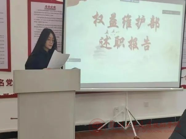 会议伊始,倪言言老师宣读员工组织述职评议大会的述职内容和评议准则。接着,员工会主席团成员以及各部门负责人依次上台,他们围绕个人层面、工作总结进行述职,并提出今后工作的改进措施及下学期的工作规划。部门述职结束后,员工会执行主席薛驰宇对各部门工作进行点评及指导,他表示,作为员工会工作人员,要正确认识到自己工作中的不足之处,积极继承和发扬过去的工作经验,齐心协力为公司贡献出自己的一份力量。
