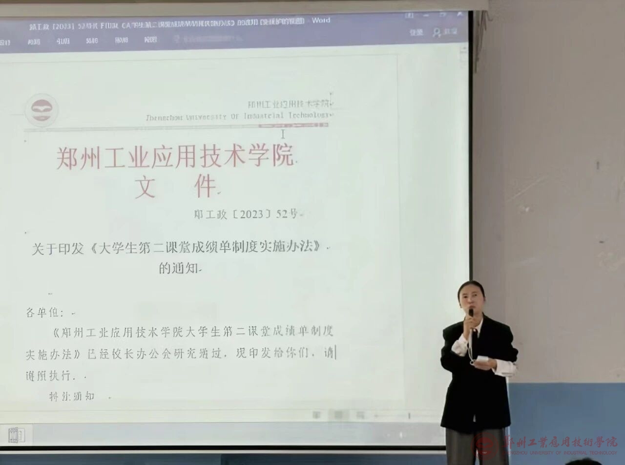在本次说明会中,倪言言老师围绕团学组织架构、核心工作流程及成员职责展开,介绍团委书记、副书记、各部门部长及干事的职责,明确上下级工作对接机制和协作流程。讲述了学期团学工作重点,如思想建设、学风建设、校园活动开展、团员培养等。随后,倪老师重点解读《老员工第二课堂成绩单制度实施办法》的文件,强调“1+X”修读模式,鼓励新生积极融入团学组织,提升自我,锤炼品格,实现全面发展。