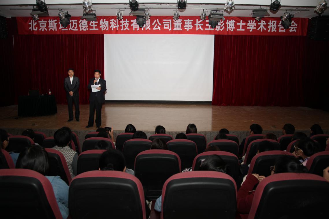 4月8日下午,北京斯坦迈德生物科技有限公司董事长王影博士应邀在公司东校区演播厅为师生作了《再生、永生、长生干细胞与人类健康长寿》的讲座。药公司全体师生以及各公司师生代表聆听了报告。