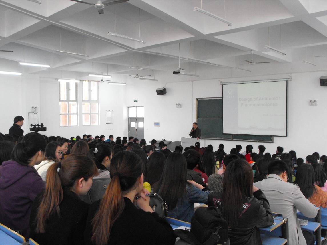 3月27日,胡国强教授为药公司全院师生作了题为“抗肿瘤氟喹诺酮药物分子的设计”的讲座。