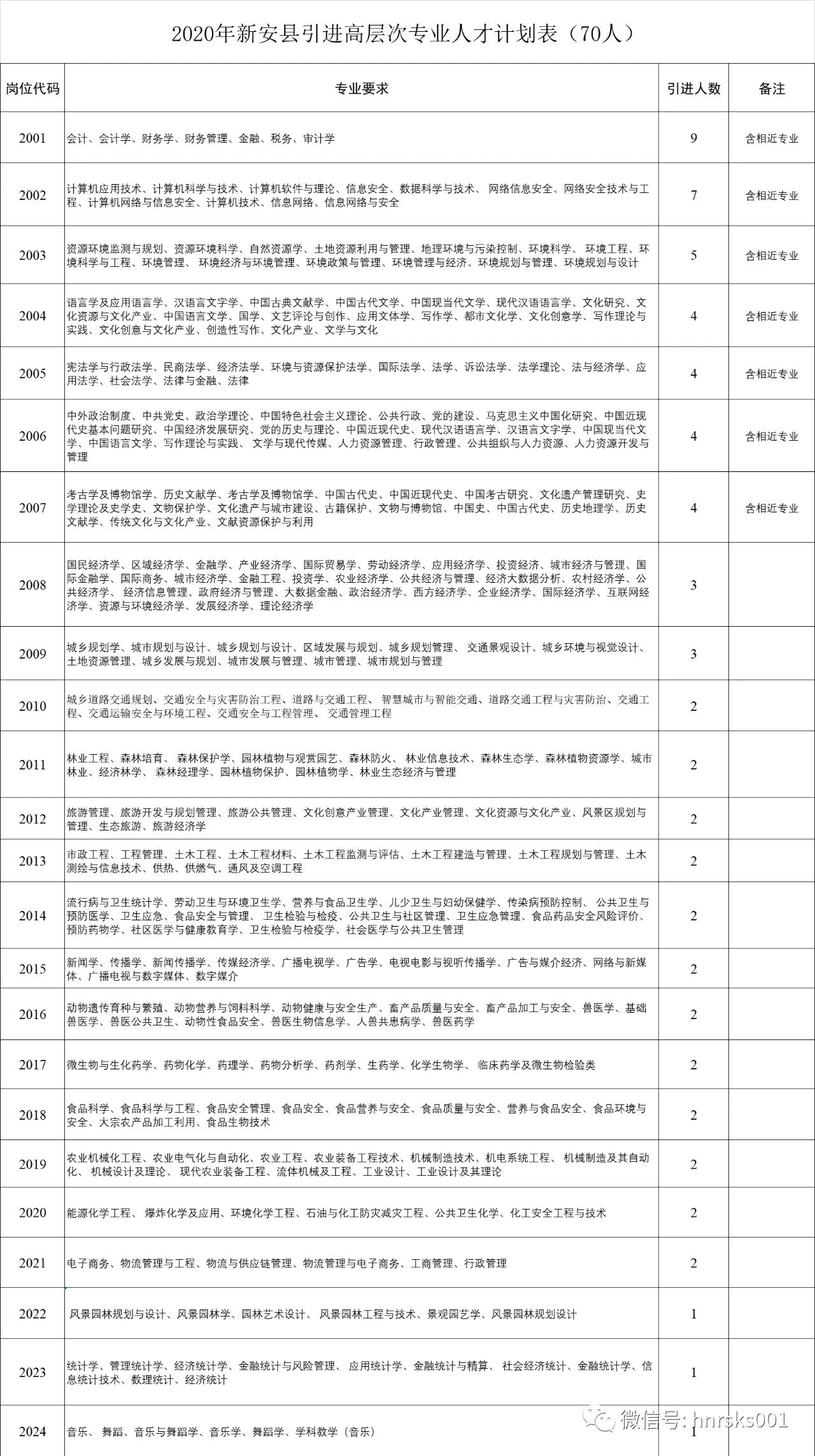 为县直事业单位及两个产业集聚区引进研究生学历高层次专业人才70名,详见《2020年新安县引进高层次专业人才计划表》(附件1)。