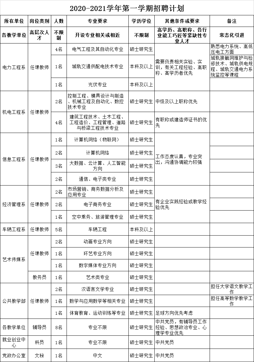 根据公司2020-2021学年第一学期用人计划,现面向社会公开招聘教师和辅导员,同时常年面向社会公开引进高层次人才,现将有关事项公布如下: