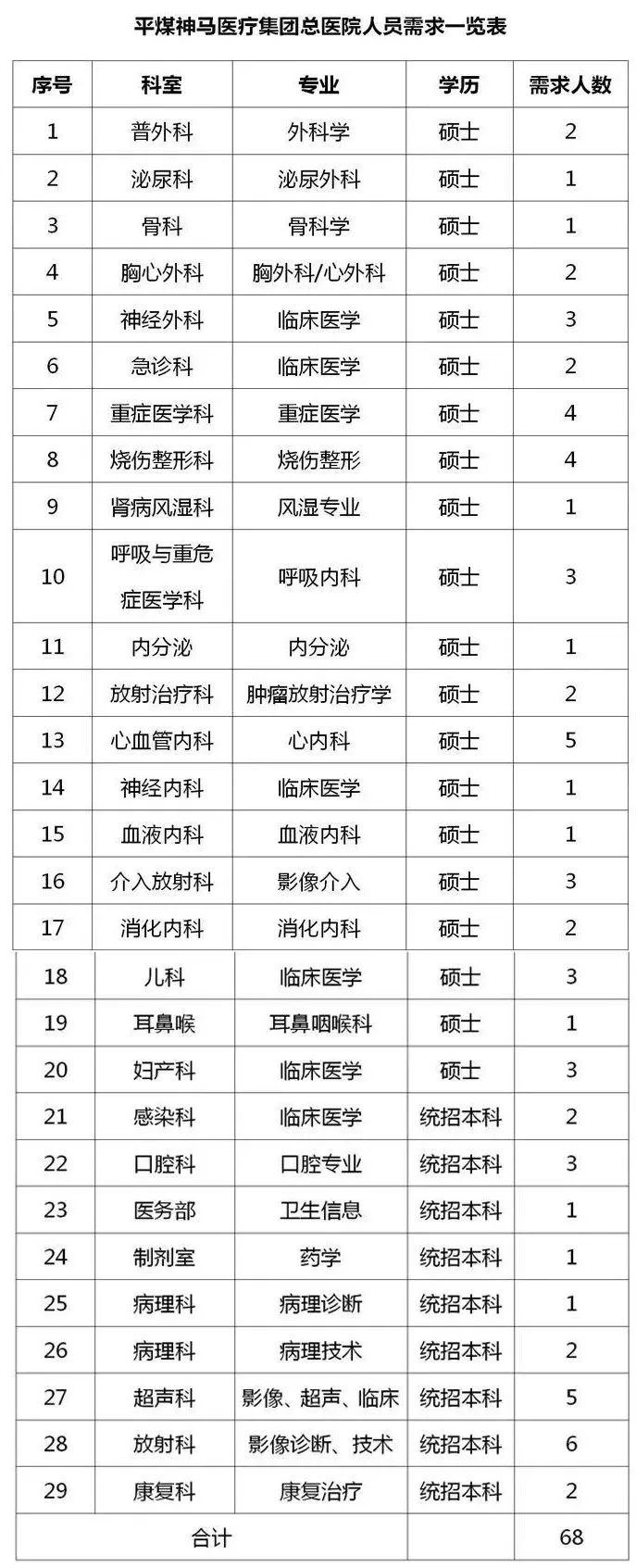 2.报名方式:报名时将填好的《平煤神马医疗集团总医院招聘报名表》(附件1)、个人简历、身份证复印件(以上都是电子版)发至297303111@qq.com。