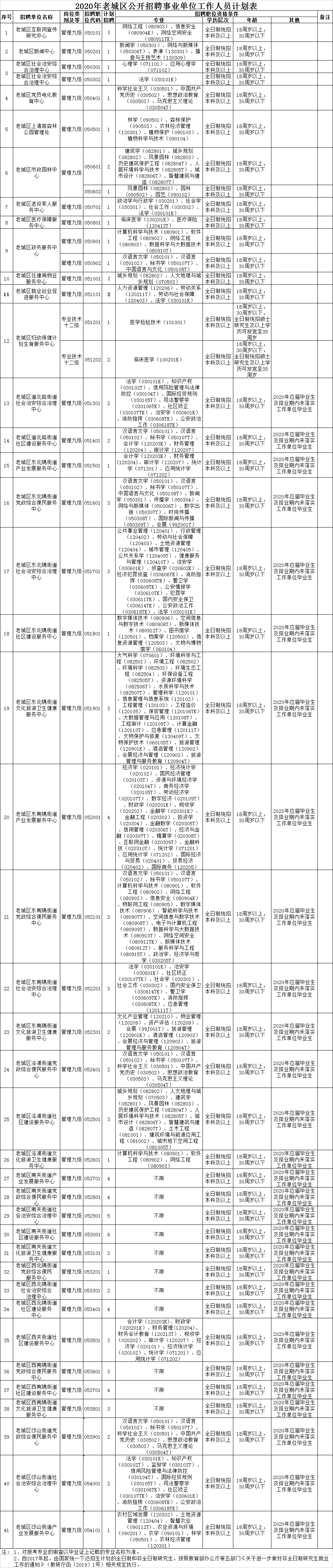 1、2020年老城区公开招聘事业单位工作人员计划表