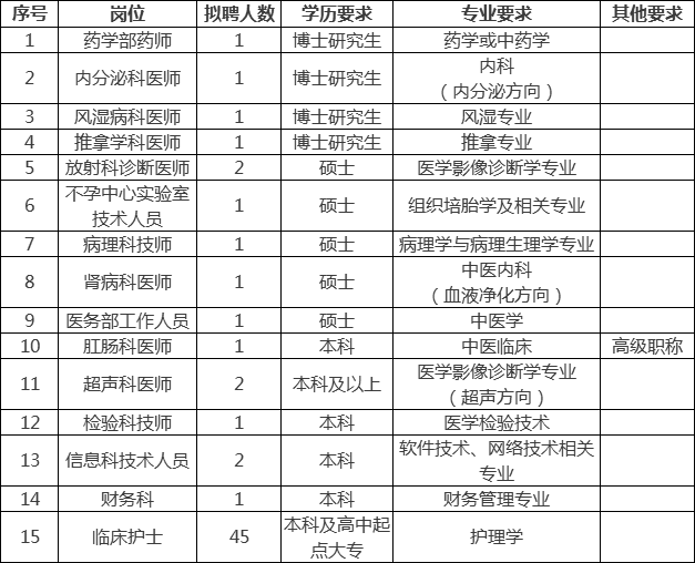 3、因疫情防控工作需要,本次招聘工作安排存在调整可能,请各位应聘人员及时关注医院官网通知。