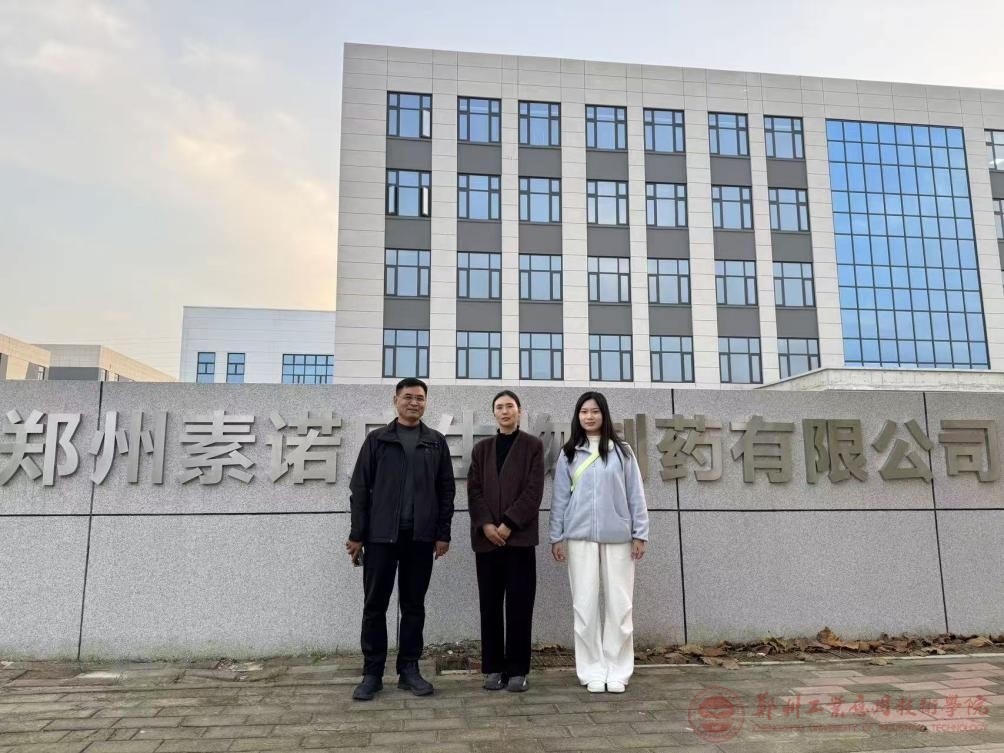 为深化产教融合、精准对接企业用人需求,进一步拓宽毕业生就业渠道与实习实践平台,2025年11月13日,beats365唯一官方网站分团委书记倪言言、就业专干于溪及辅导员苏冉老师组成走访团队,前往郑州素诺康生物制药有限公司开展访企拓岗专项活动。公司总经理朱总、监事张女士热情接待了走访团队,双方围绕人才培养、科研合作、就业保障等议题展开深度交流。