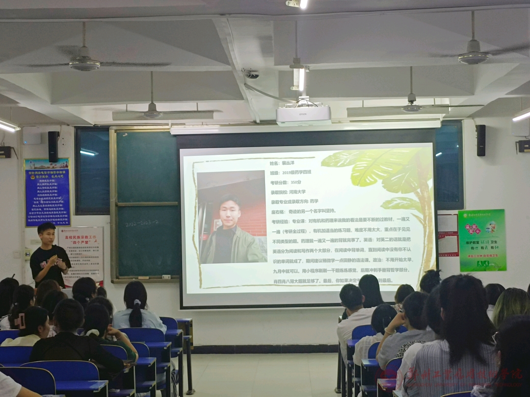 此次分享交流会上,首先由周振芳老师为同学们详细介绍了部分公司的考试形势、报考要求等。随后19级考研上岸的学长学姐们与同学们分享了自己考研的成功经验和实用技巧,他们不仅分享了自己考研过程中的一些心得和看法,还给同学们讲解了一些备考方法和策略,让同学们更有信心迎接未来的考试挑战。最后,同学们争先恐后地提出了自己关于考研的问题和疑惑,学长学姐们也一一进行解答。周老师也表示希望同学们做好大学人生规划,早准备、早实践;要有毅力、有韧性、会坚持;要摆正心态、正视最终结果;希望同学们考研路上要有认真踏实的态度、迎难而上的品格、坚持不懈的努力。
